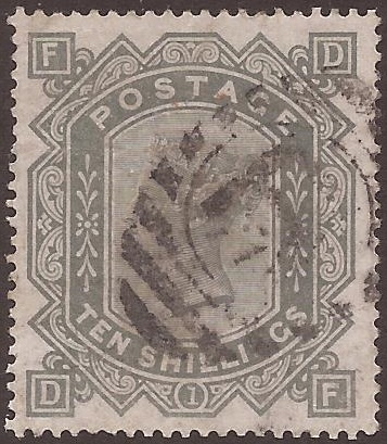1867-83 10/- greenish grey DF Pl.1
